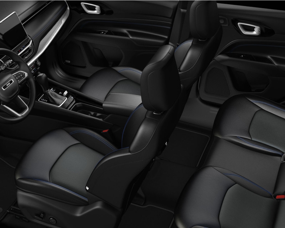 Inside, the Compass makes smart use of space. With the rear seats folded, cargo room expands to more than 1,700 litres. That is plenty for skis, hockey equipment, or weekend camping supplies. With the seats up, five passengers can ride in comfort with room to spare. Cloth seating comes standard, while available leather adds an upscale touch on higher trims. The interior feels simple, open, and practical, making it a good match for both daily errands and long trips.