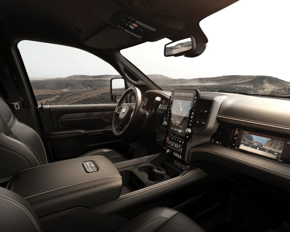 The interior of the 2026 Ram 2500 offers smart tech that makes sense for the driver and passengers alike. A touchscreen is available up to 12.0-inches in size per higher trims. The optional system features 10 Alpine speakers for rich sound. Connectivity features like wireless phone compatibility help you stay linked without fuss. Options include heated seats, ventilated seats, a heated steering wheel and other comfort touches that matter on cold northern Alberta mornings. Keyless entry and keyless ignition are available so you’re ready to go quickly when work or family schedule calls. The materials feel strong and well built. Whether driving toward Calgary or out around Cochrane’s surrounding trails the cabin keeps occupants comfortable.